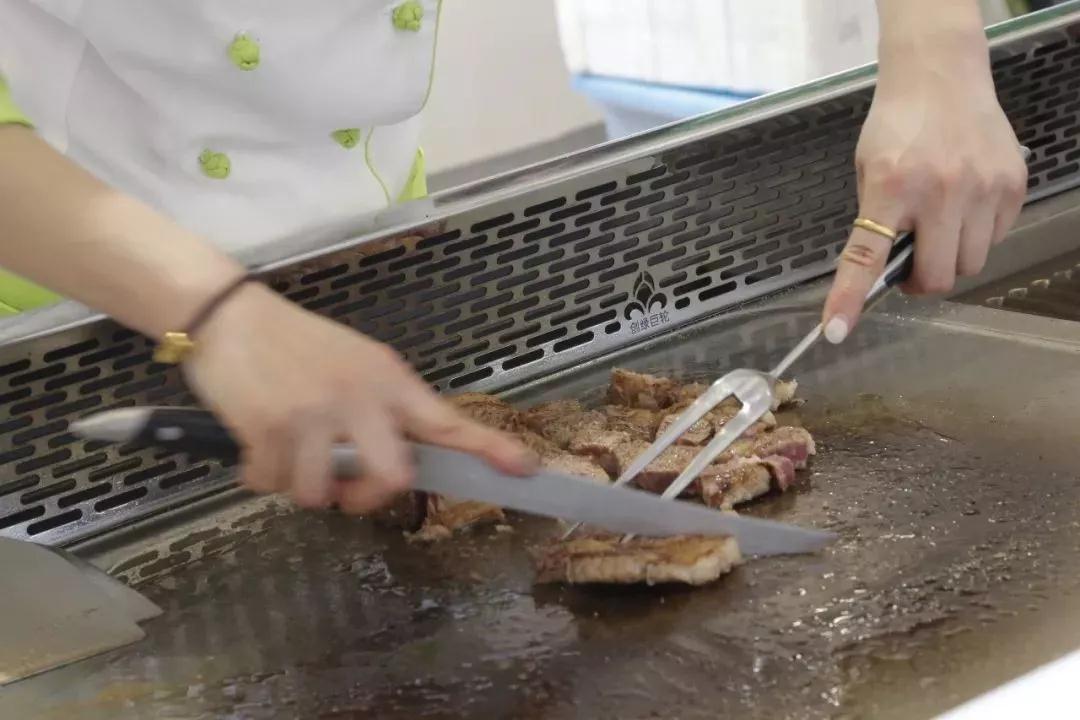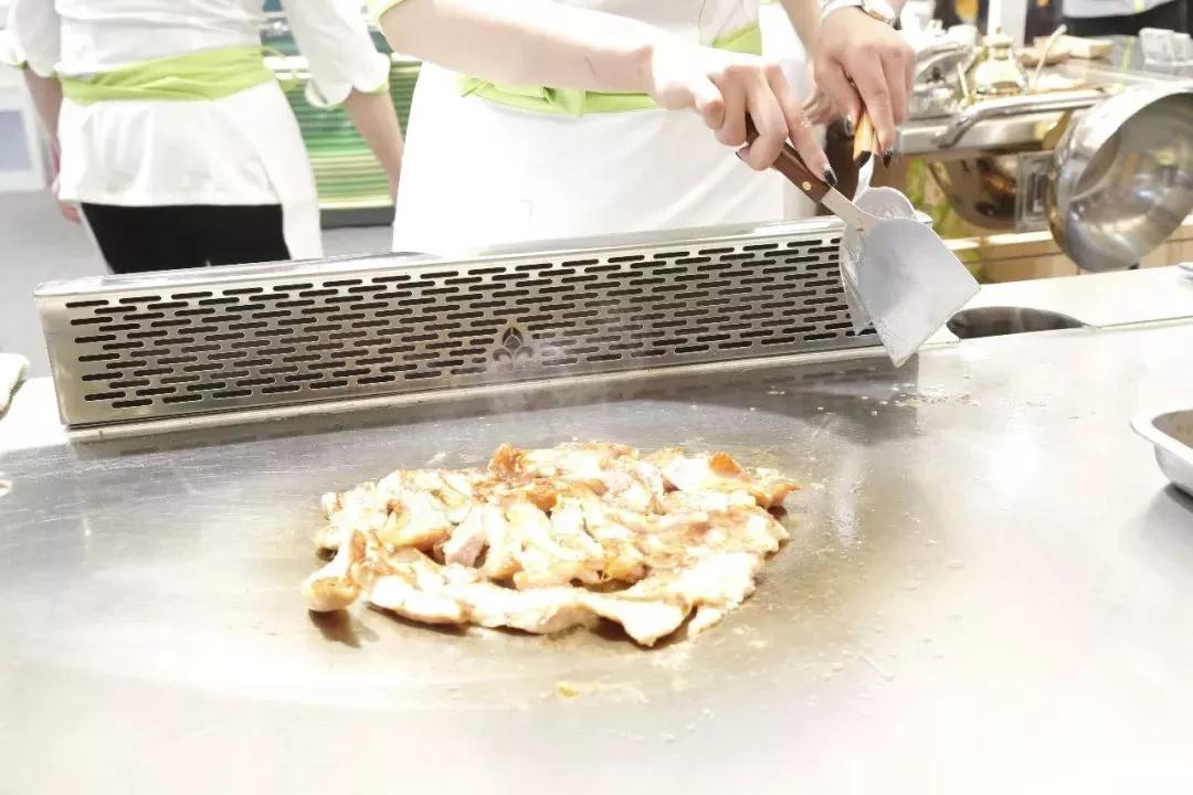 在今天开幕的27届上海国际酒店用品博览会上,创绿巨轮向观展人展示了创绿企业最新较好的铁板烧产品,在现场烹饪美食,接受零距离的挑战。