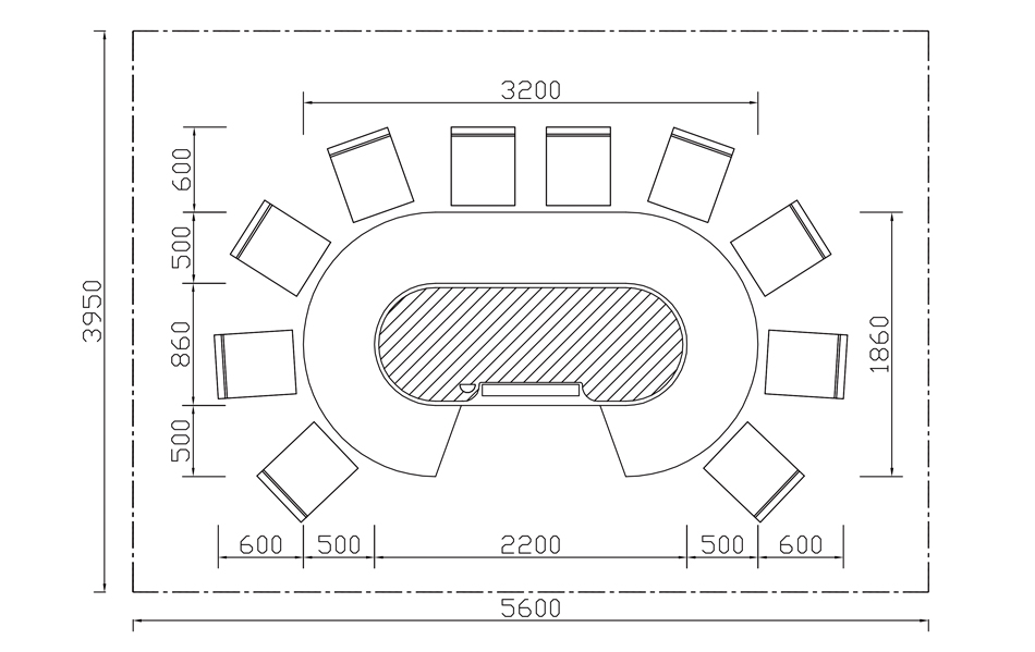 椭圆形十人铁板烧CAD规格图